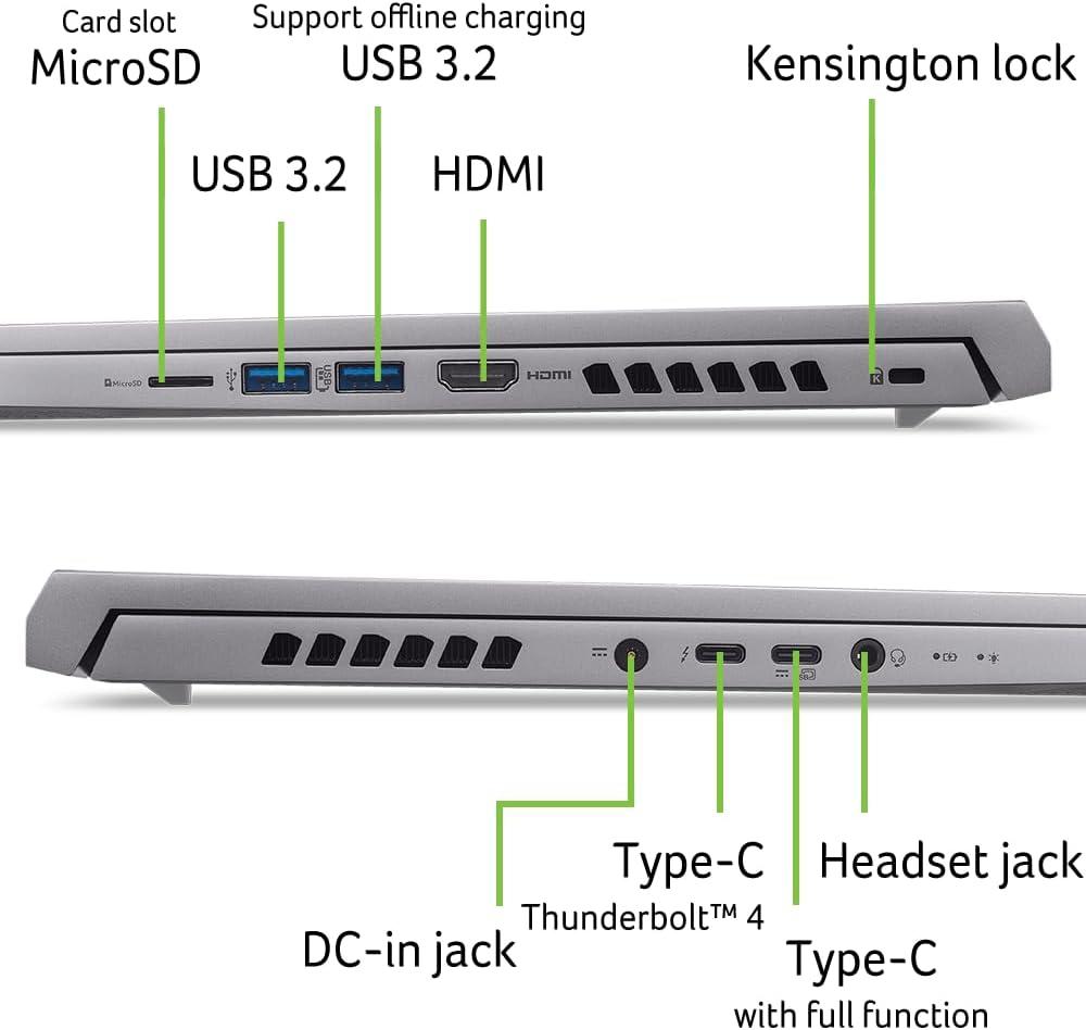 Internal Specifications: 32GB LPDDR5X Memory; 1TB PCIe Gen 4 SSD; microSD Card Reader; Killer Wireless Wi-Fi 6E AX1675 supports dual-stream Wi-Fi in the 2.4GHz, 5GHz and 6GHz bands, including 2×2 MU-MIMO Technology, Supports Bluetooth 5.3 or above, Supports Bluetooth LE Audio, DTS X: Ultra Audio