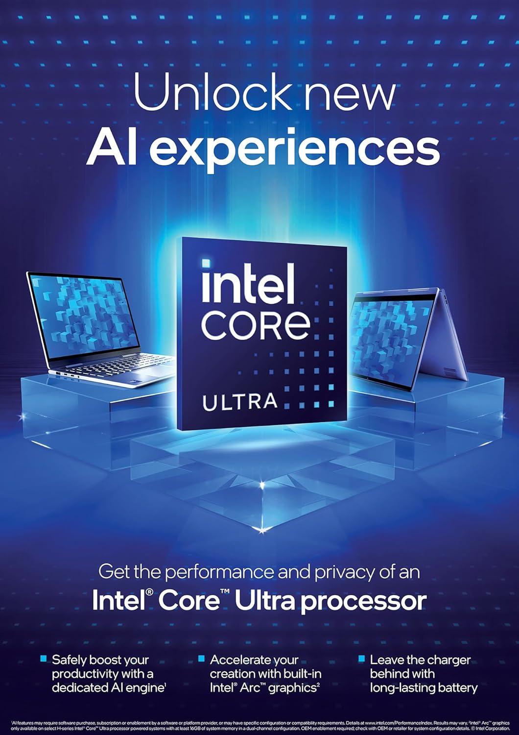 A Powerhouse of Performance: Intel Core Ultra 7 processor with Intel AI Boost delivers a dedicated engine to help unlock AI experiences on the PC, the next level in immersive graphics, and high-performance low power processing, so you can confidently get more done in less times while unplugged.