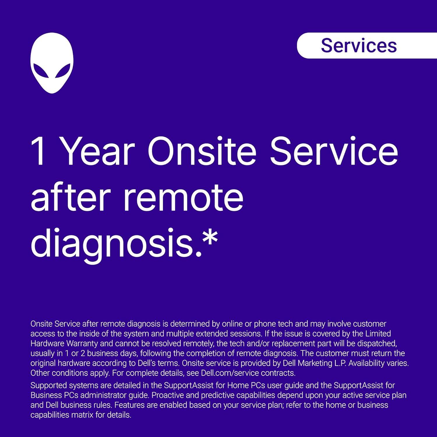 Dell Services: 1 Year Onsite Service provides support when and where you need it. Dell will come to your home, office, or location of choice, if an issue covered by Limited Hardware Warranty cannot be resolved remotely.