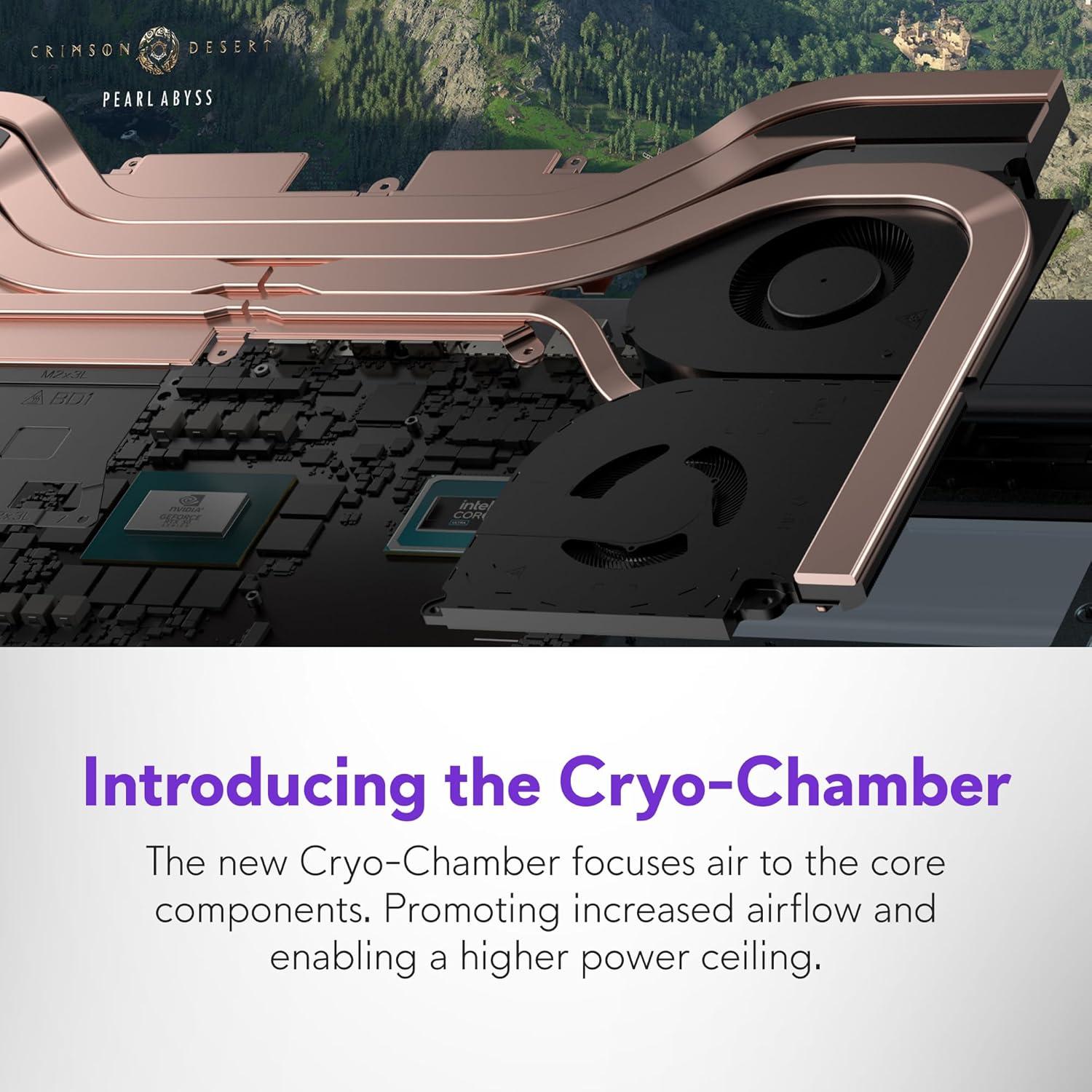 Introducing the Cryo-Chamber: Developed by our engineers, Area-51’s new Cryo-Chamber structure, located at the bottom of the laptop, focuses air to the core components where it matters the most.