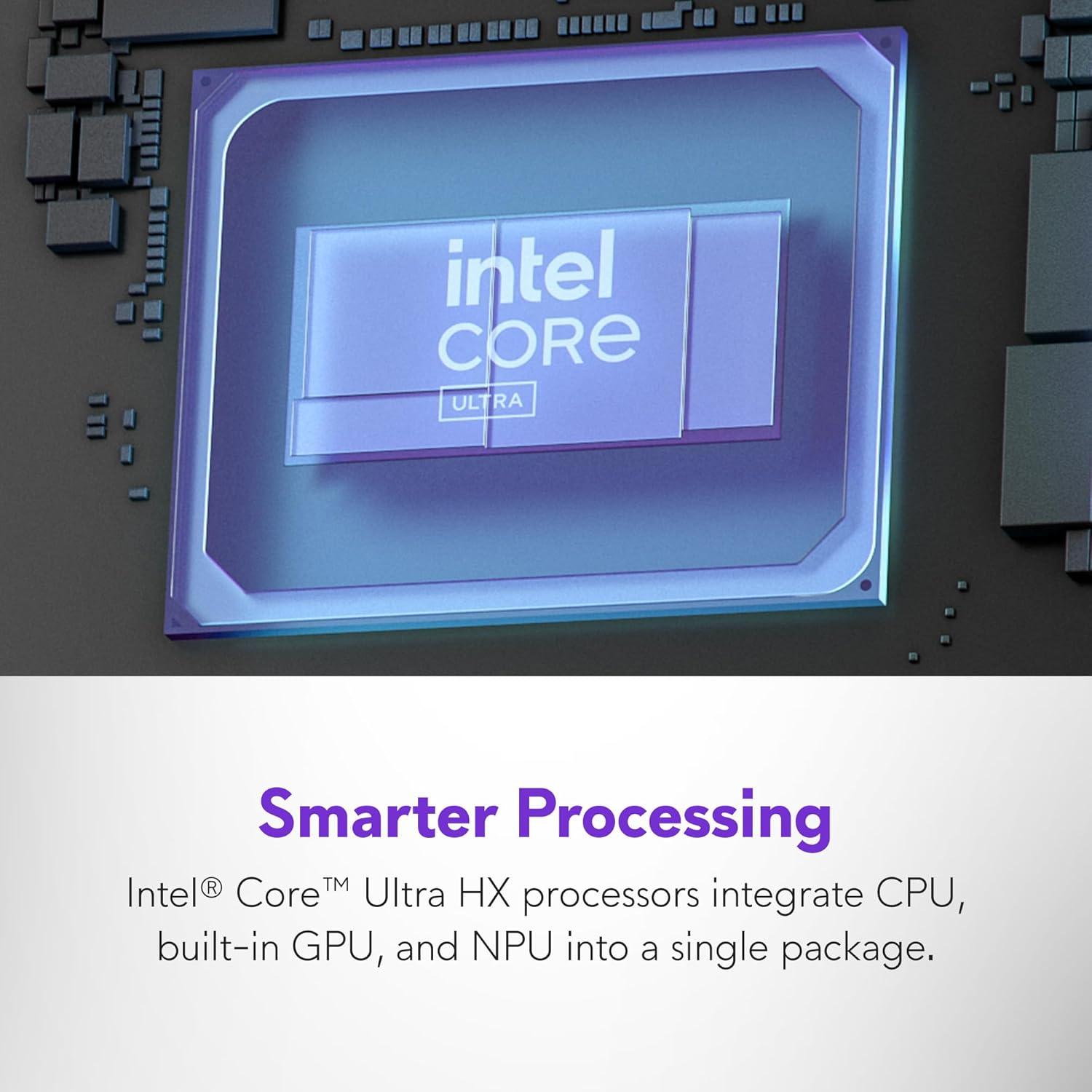 Intelligent processing: Intel Core Ultra 9-275HX processors integrate CPU, built-in GPU, and NPU into a single package designed for AI acceleration and balanced performance across your favorite things to do.