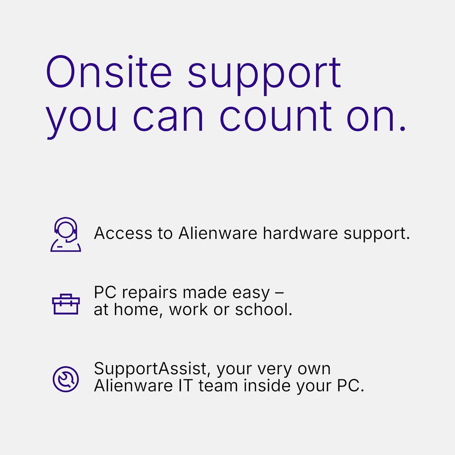 Dell Services: 1 Year Onsite Service provides support when and where you need it. Dell will come to your home, office, or location of choice, if an issue covered by Limited Hardware Warranty cannot be resolved remotely.