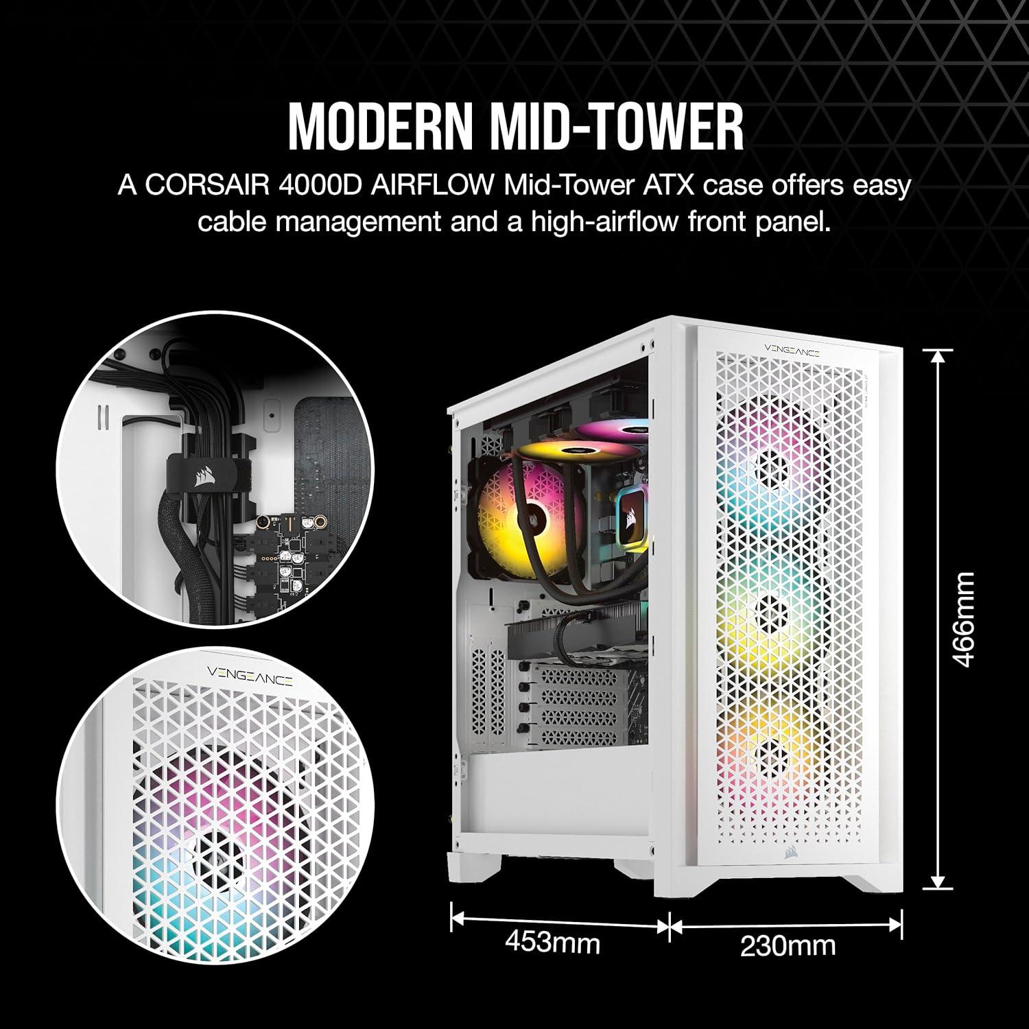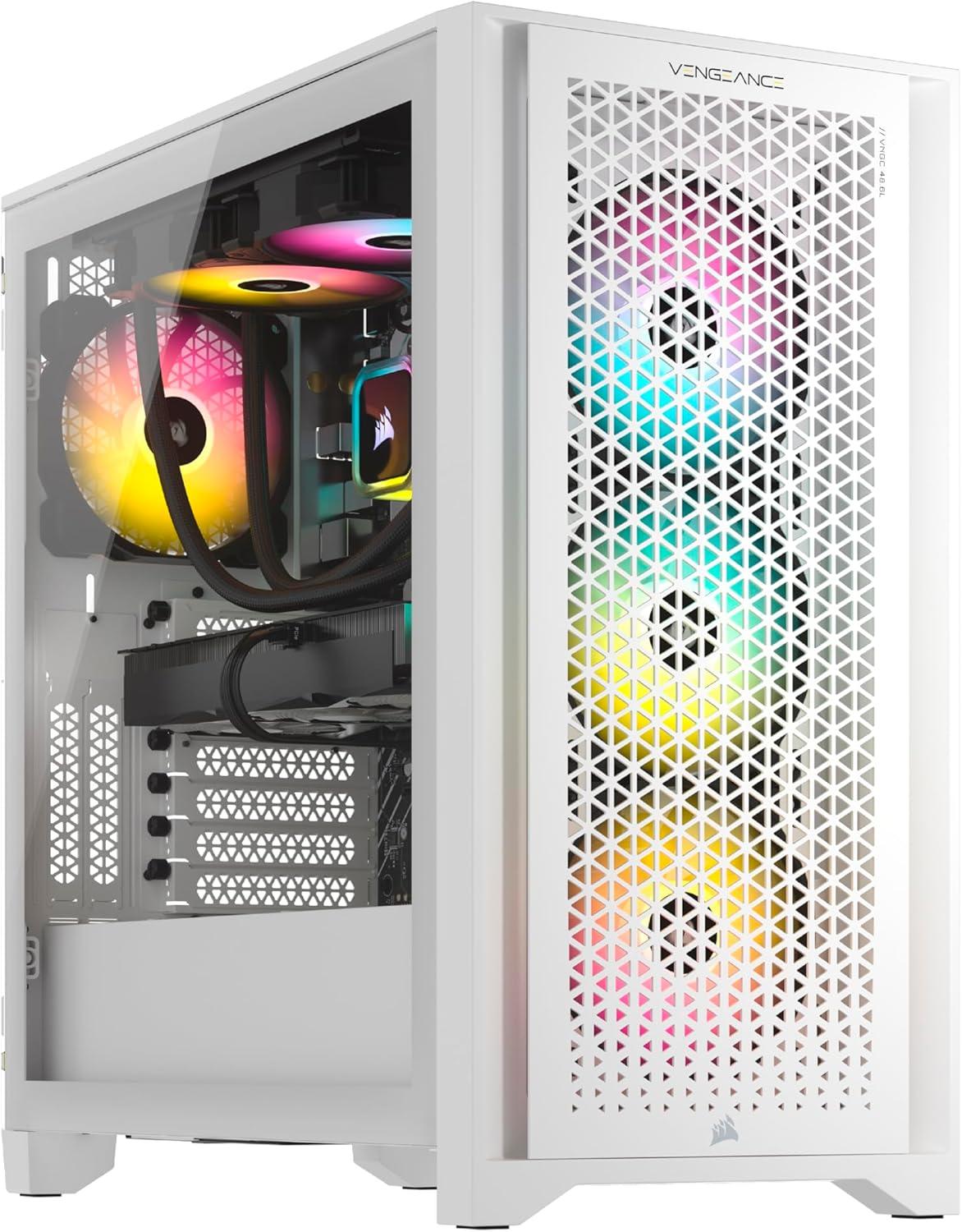 CORSAIR 3500X ARGB Mid-Tower Case: Offers stunning views of your PC’s internals through its wraparound tempered glass panels, along with impressive cooling performance from side, rear, and roof fans