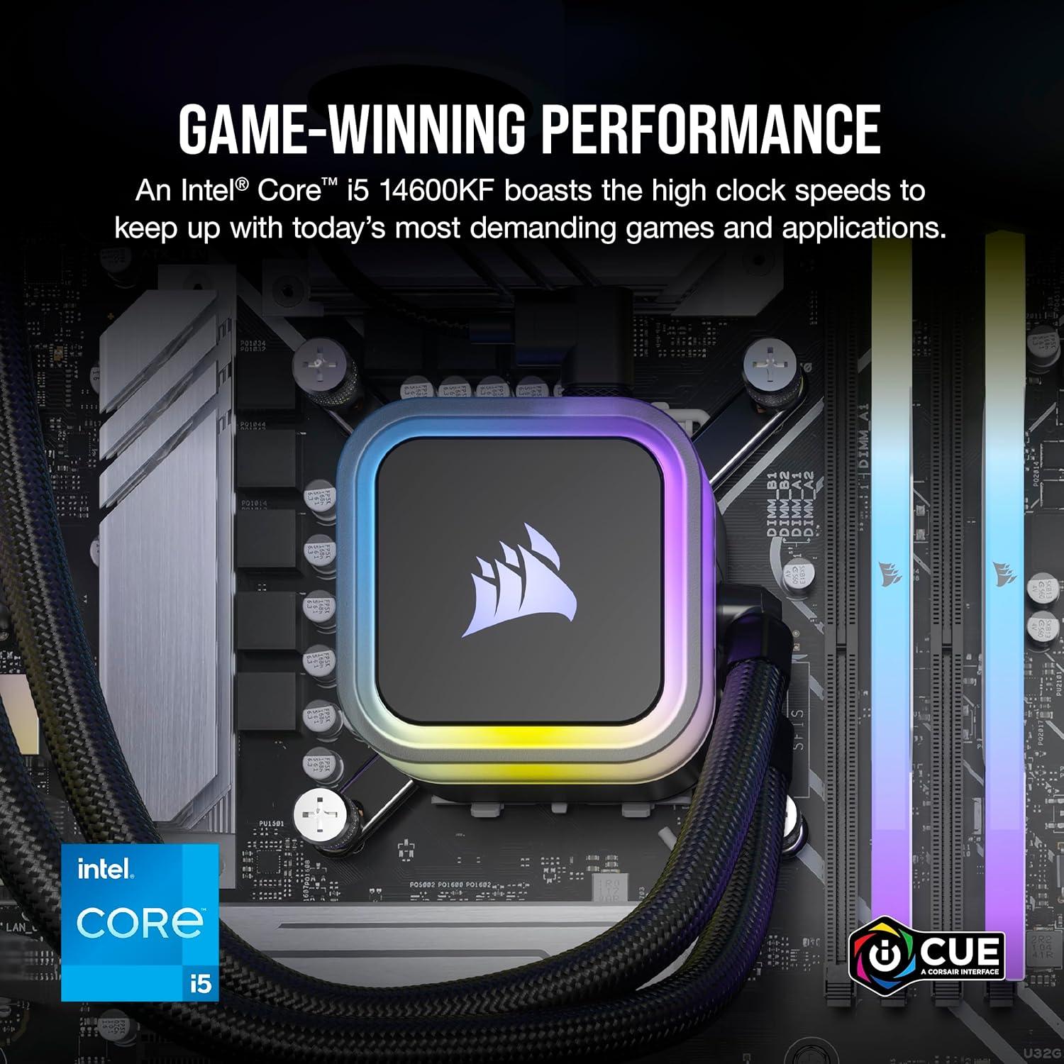 Liquid-Cooled 14th Gen Intel Core CPU: The latest in dynamic CPU architecture so you can game and multitask without compromise, cooled by a CORSAIR NAUTILUS RS ARGB liquid CPU cooler