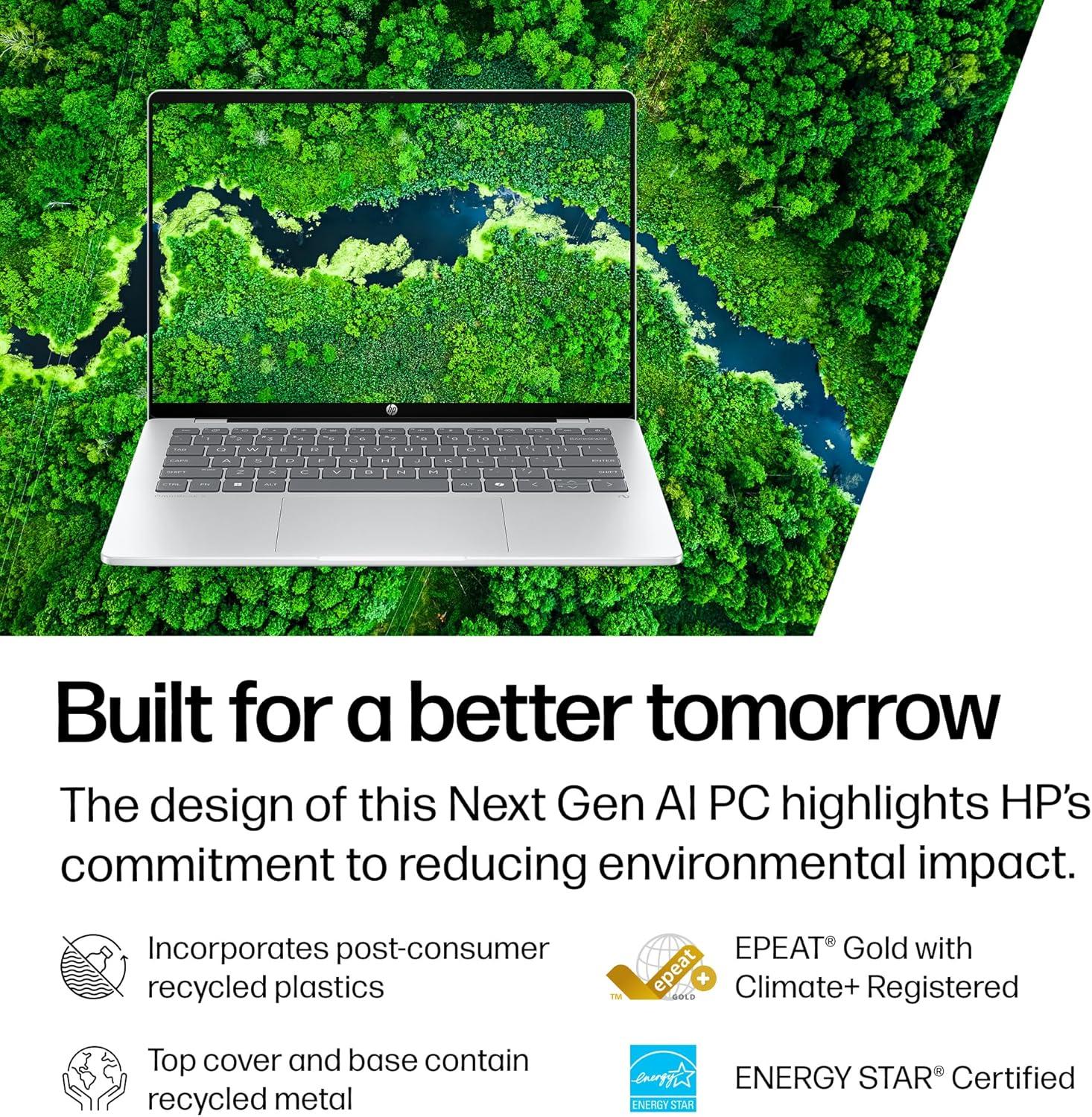 HP OmniBook 5 14 inch Next Gen AI PC, OLED Display, Snapdragon X Plus X1P-42-100, 16 GB RAM, 1 TB SSD, Qualcomm Adreno GPU, Windows 11 Home, Copilot+ PC, Glacier Silver, 14-he0099nr
