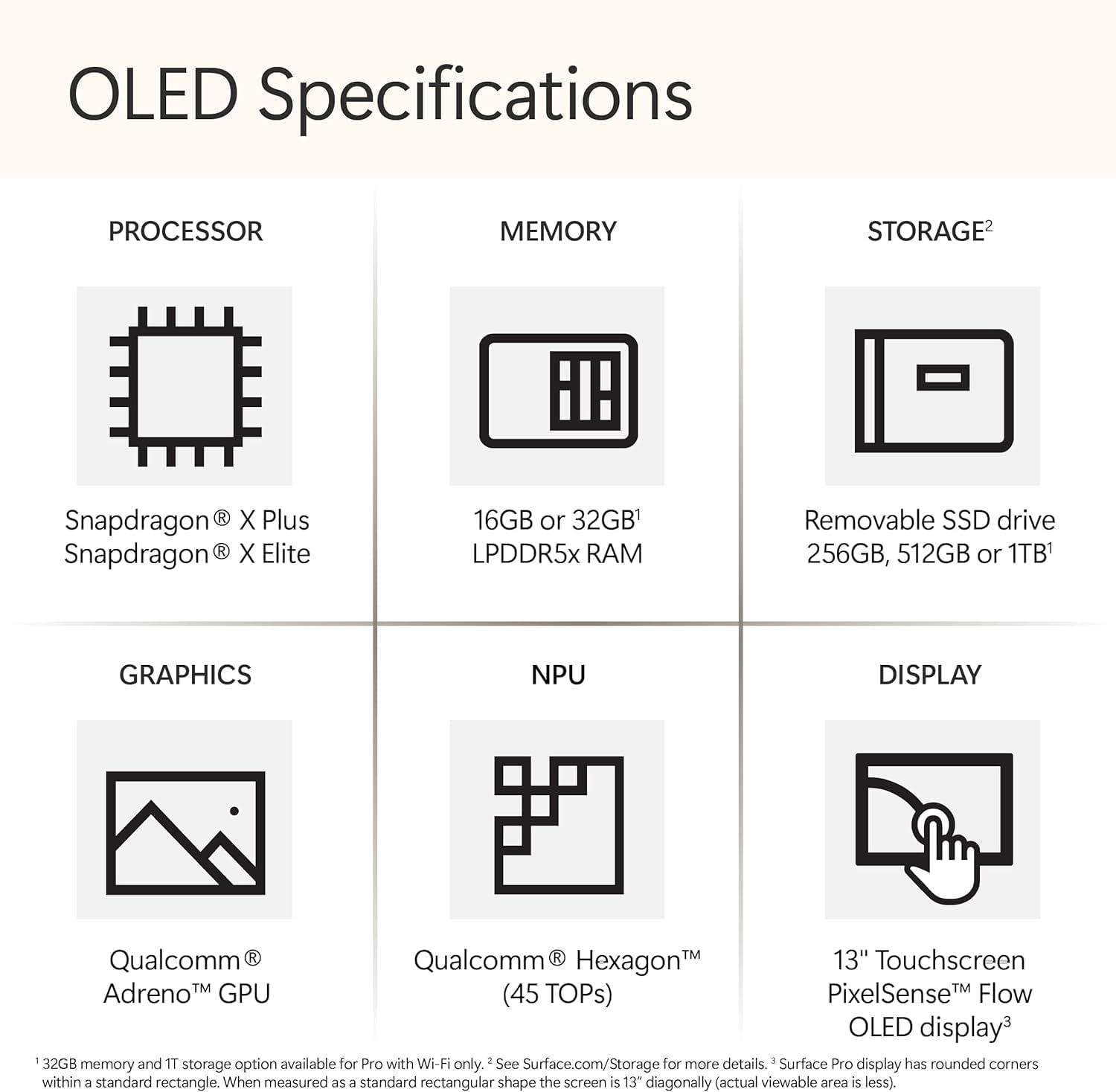 Microsoft Surface Pro 2-in-1 Laptop/Tablet (2024), Windows 11 Copilot+ PC, 13″ Touchscreen OLED Display, Snapdragon X Elite (12 Core), 16GB RAM, 256GB Storage, Black, Amazon Exclusive(Dune)