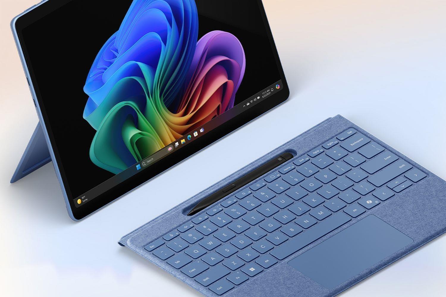 * Some Copilot+ PCs require download of free updates to run Copilot+ PC experiences, available starting late 2024 – 2025. See https://aka.ms/copilotpluspcs ** Pre-release screen shown; subject to change. *** Availability of Copilot+ PC features varies by device and market. [1] Detached use requires Windows 11. [2] Surface Pro Flex Keyboard can be attached to Surface Pro, Surface Pro 10, Surface Pro 9 and Surface Pro 8. [3] Surface Pro Flex Keyboard is charged while attached to a compatible Surface device. Testing conducted by Microsoft in March 2024. See aka.ms for details. [4] Requires Windows 11. Battery life varies significantly based on device configuration, usage, and other factors. See https://aka.ms/SurfaceBatteryPerformance for details. [5] Sold separately. [6] Surface Slim Pen (2nd Edition) experiences and compatibility vary by which Surface device you are using it with. Visit https://aka.ms/SurfaceSlimPenCompatibility to learn more. [7] Use Copilot key with supported Windows 11 devices; feature availability varies by device and market, see https://aka.ms/KeySupport [8] Available colors may vary by market.