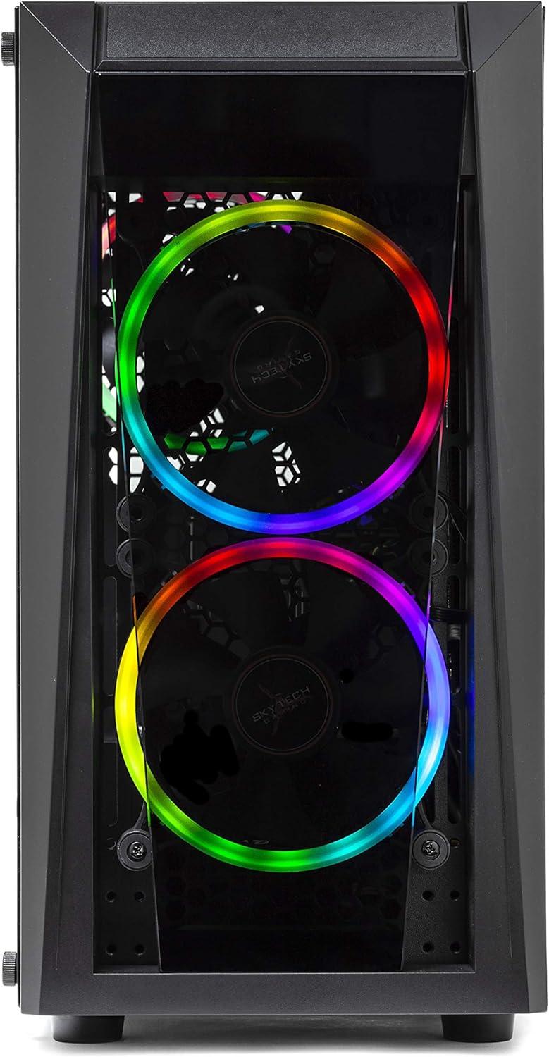 High-spec AIO liquid coolers used, delivering unmatched cooling performance for a perfect operational experience and unparalleled cooling performance. With hardware unrestricted by temperature limits, you can unleash its full potential. Whether gaming, creating, or working, you'll never suffer from thermal throttling again. | Skytech Azure Gaming Case with Tempered Glass, Black | 1 Year Warranty on Parts and Labor | Free Technical Support | Assembled in the USA