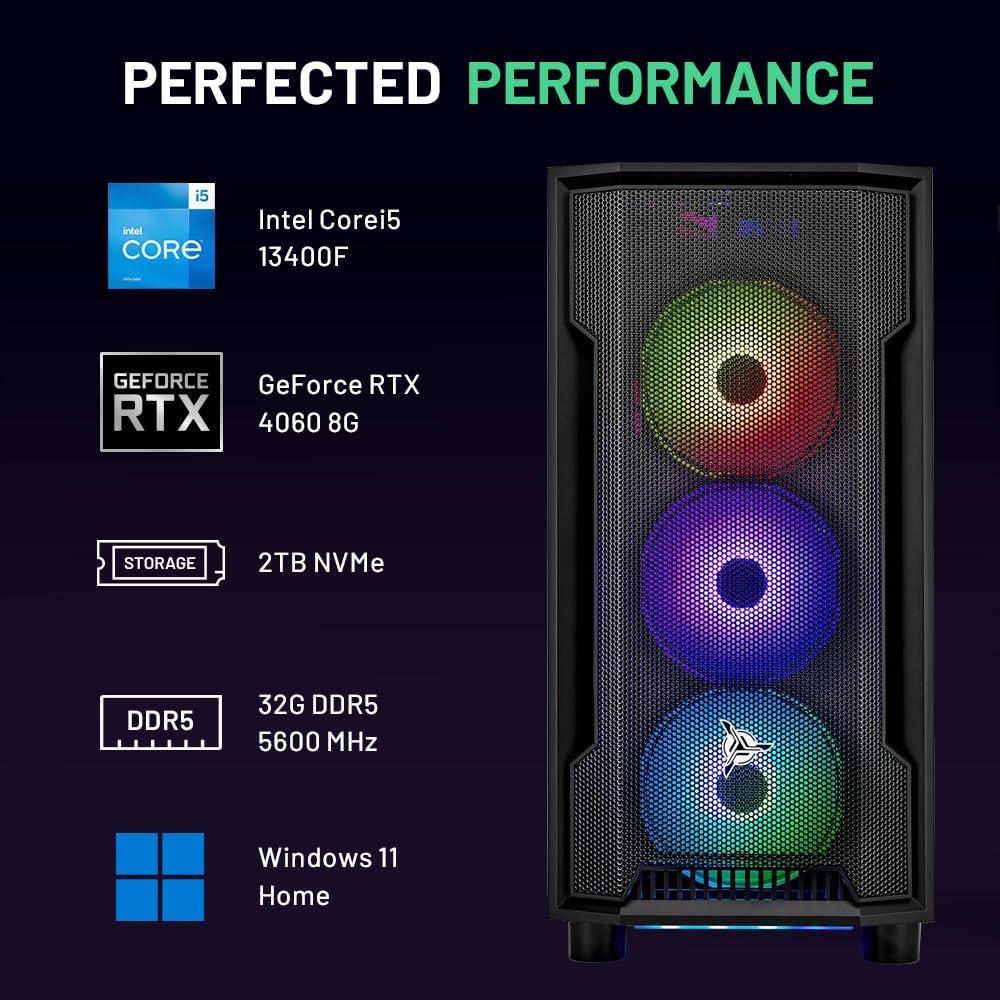 Skytech Gaming Nebula Gaming PC, AMD Ryzen 5 5500 3.6GHz, AMD RX 6500XT 8GB, 500GB NVMe SSD, 16GB DDR4 RAM 3200, 650W Gold PSU, Wi-Fi, Win 11, Gaming Desktop(13400F | INTEL ARC B580)