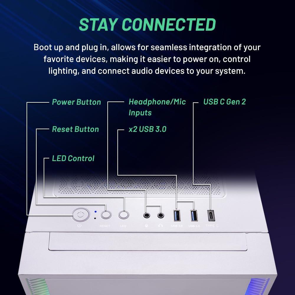 This powerful gaming PC is capable of running all your favorite games such as Call of Duty Warzone, Fortnite, Escape from Tarkov, Grand Theft Auto V, Valorant, World of Warcraft, League of Legends, Apex Legends, Roblox, PLAYERUNKNOWN's Battlegrounds, Overwatch 2, Counter-Strike 2, Battlefield V, New World, Minecraft, Elden Ring, Rocket League, Baldur's Gate 3, Dota 2, HELLDIVERS 2, Monster Hunter, Palworld, Terraria, Rainbow Six Siege, Dragon's Dogma 2, and more at Ultra settings, detailed 1080p Full HD resolution, and smooth 60 plus FPS gameplay.