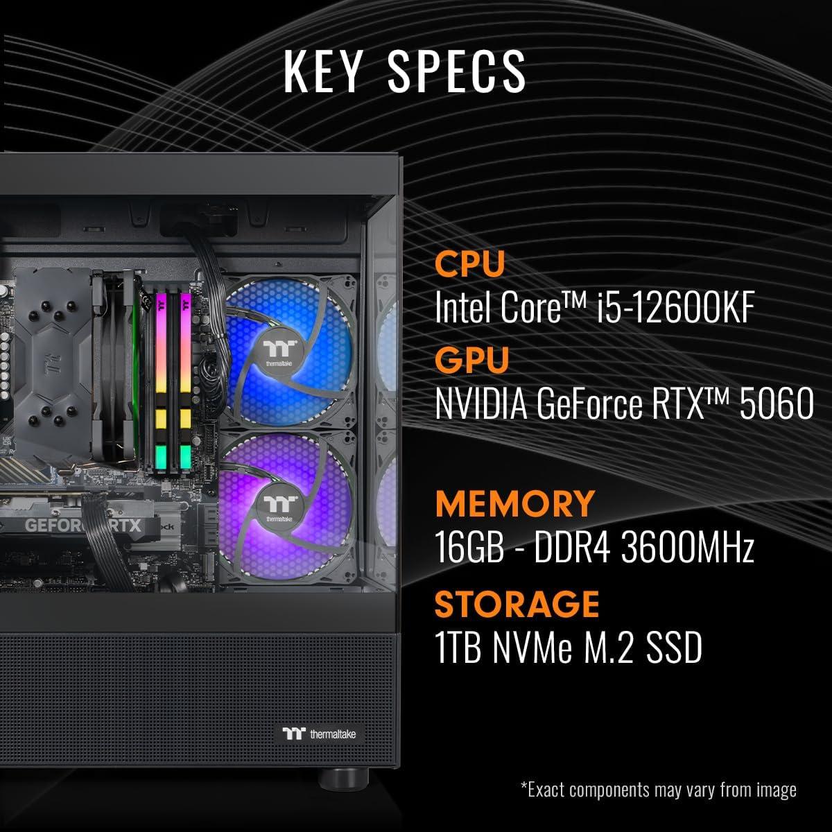Thermaltake LCGS View i1260-170 Gaming Desktop (Intel Core™ i5-12600KF, ToughRam DDR4 3600Mhz 16GB RGB Memory, NVIDIA® GeForce RTX™ 5060, 1TB NVMe M.2, WiFi, Windows 11) V17B-B76R-560-LCS(5060)